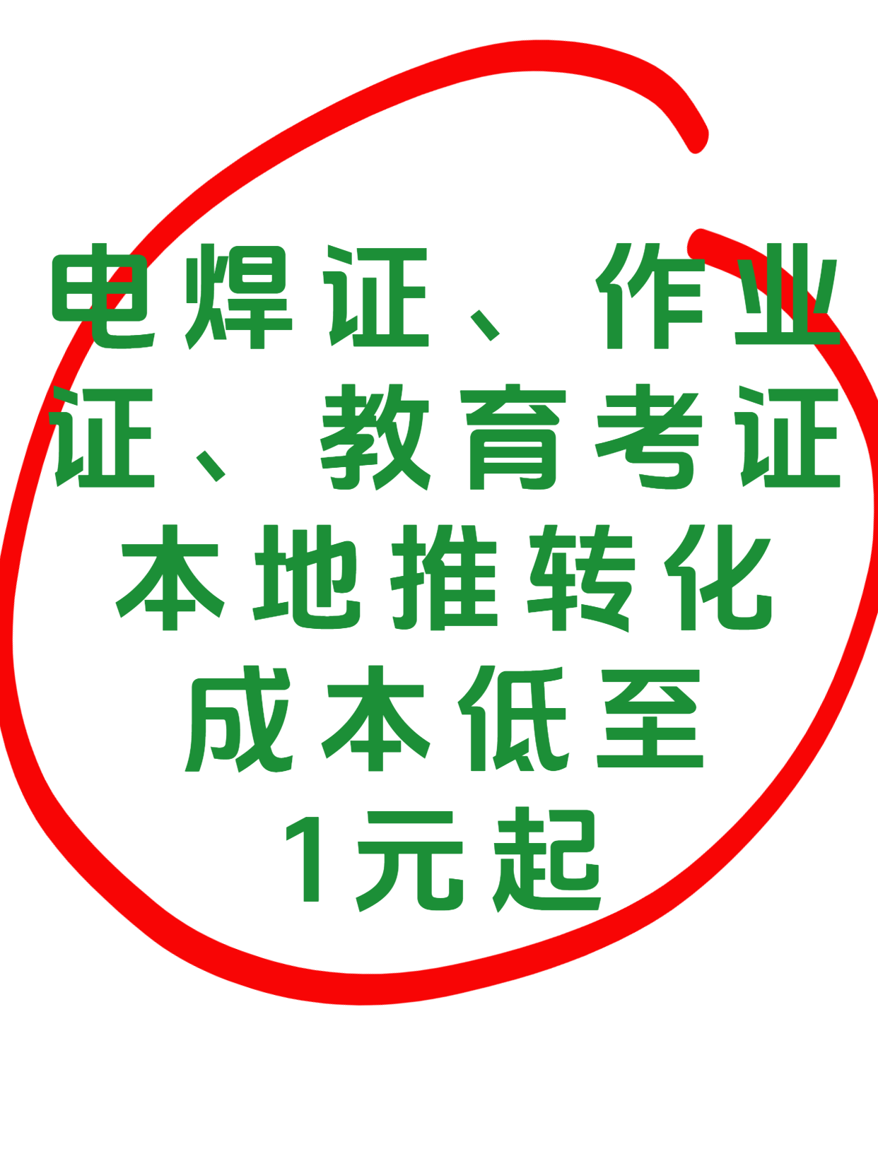教育考证,电焊证,特种作业证,各种证书,本地推开户,成本超低,低至1元起。需要的赶紧来咨询