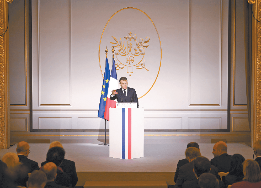 据法国《世界报》报道,马克龙敦促他的外交官们不要“袖手旁观,任由事态恶化”。“恰恰相反,我们不是来评论的,我们是来行动的!”他表示,法国大使们要肩负起法国的“外交雄心”,法国和欧洲既不应顺从强权逻辑、成为一方的附庸,也不应仅仅进行道义谴责、成为无力行动的“无能道德大国”,而要在世界乱局中不断增强自身实力和对外影响力,加强战略自主。马克龙认为,法国和欧洲要维护自身安全、经济利益,以及自身价值观,并通过外交行动,巩固伙伴关系,维护多边主义。