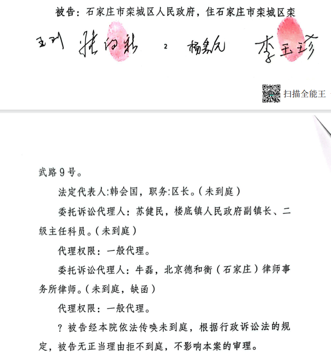 石家庄栾城区政府被诉后无人出席庭审:法院判定缺席审判,继续庭审