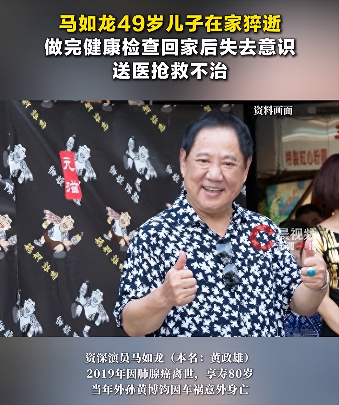 演员马如龙49岁儿子在家中去世:做完健检回家突倒地,送医抢救不治_每日快讯(日常热点指南)