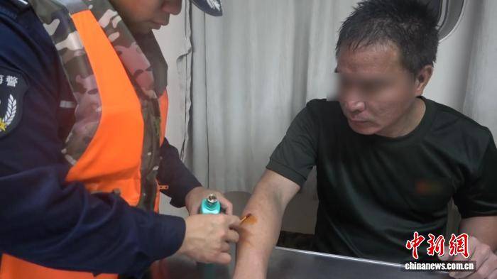 海南海警救援人员为获救男子开展初步身体检查并处理伤口。海南海警局供图