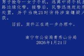 男子抢夺陌生女子手机,南宁警方:嫌疑人已被抓获