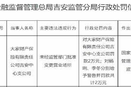未经监管部门批准变更营业场所,大家财险吉安中心支公司被罚款2万元
