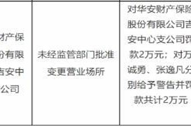 未经监管部门批准变更营业场所,华安财险吉安中心支公司被罚款2万元