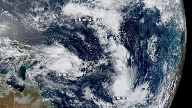 ▲赤道附近南北半球同时出现三个热带气旋