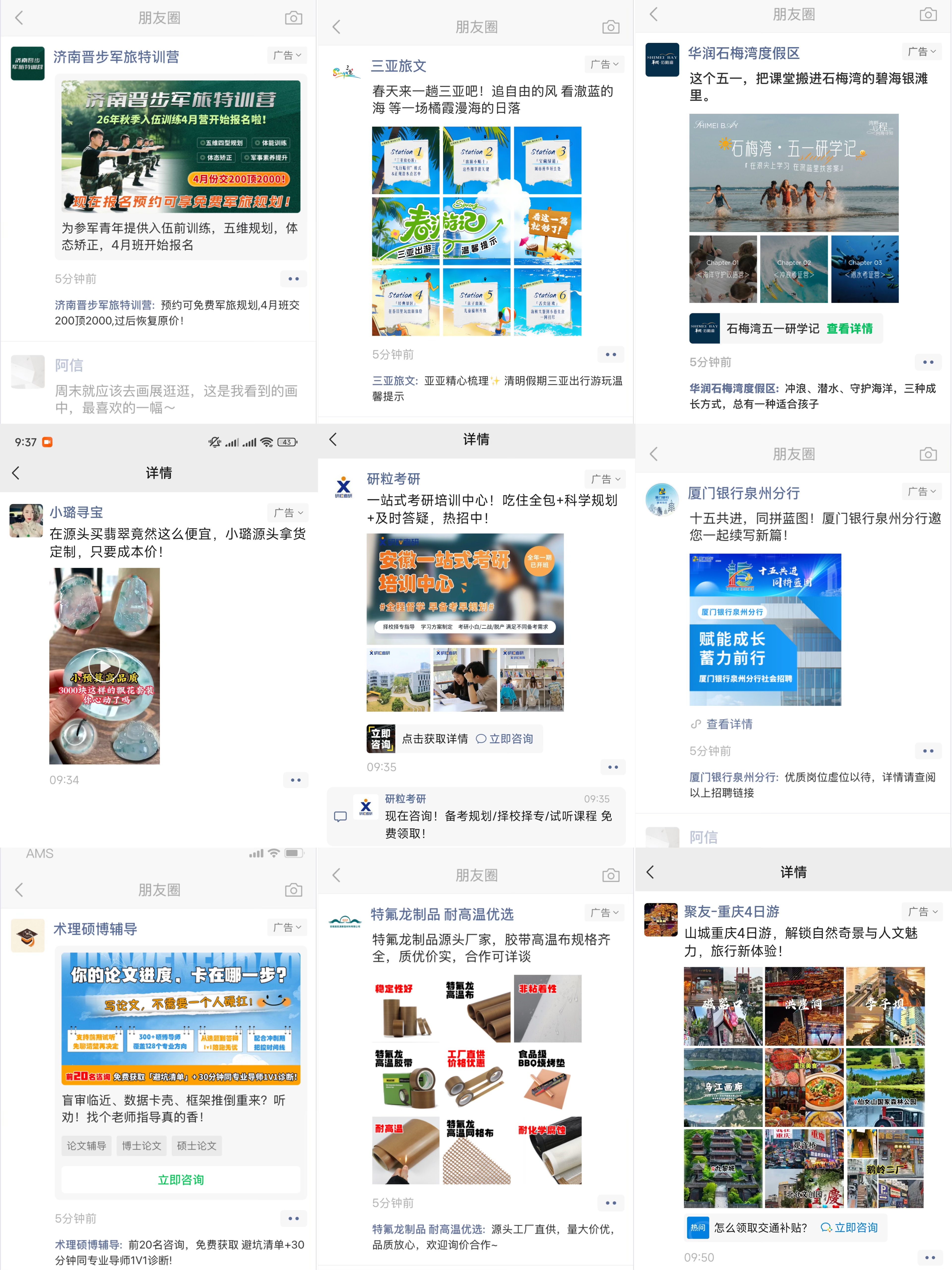 朋友圈广告全行业一手渠道加白现户,禁投行业均可接单,资质全包、免保证金、精准低价好量承接中考复读、高考复读、职校招生、研学、夏令营、志愿填报、金融个贷、企业贷、车抵房抵、公积金、获客抵押典当、黄金回收、奢饰品回收、名酒回收、上门SAP、心理咨询、国学易经、八卦、情感咨询、交友